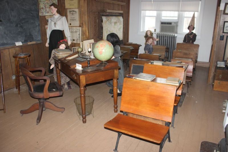 The third floor, in the past, was used to sequester juries but today contains a reproduction one-room school house stocked with innumerable class photos from the early 1900’s, desks, books, typewriters, blackboards and more. This room serves as a repository for actual pieces of history that were removed from the many one-room school houses and public schools in the county.